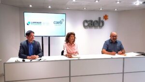 La presidenta de la Confederación de Asociaciones Empresariales de Balears (CAEB), Carmen Planas, y el consejero delegado de Laminar Pharmaceuticals, Pablo Vicente Escribá, han formalizado su alianza, acompañados de Manuel Matutes, uno de los accionistas principales de la compañía biofarmacéutica. 585