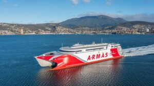 El nuevo catamarán de Naviera Armas Trasmediterránea, Volcán de Taidía, ha cubierto ya la primera etapa de su viaje de posicionamiento desde Hobart, Tasmania (Australia), hasta Nueva Zelanda donde se encuentra atracado desde esta mañana. 68