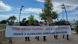 La ‘Marcha por la libertad’ convocada para esta sábado en Palma bajo el lema ‘Stop Abuso Político-No a las guerras; Frente al globalismo, soberanía individual’ ha reunido a unas cincuenta personas. 73
