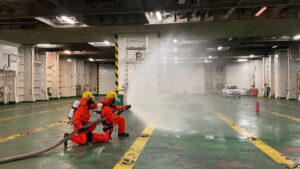 La naviera Trasmed, perteneciente a Grupo Grimaldi, y la Autoridad Portuaria de Valencia han llevado a cabo este lunes por la mañana un ejercicio de situación de emergencia en la terminal de Trasmed en el puerto de Valencia. 47
