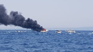 Un yate se ha hundido este mediodía tras arder frente a las costas de Portals. A bordo iban dos tripulantes que han sido rescatados por otra embarcación que navegaba por las proximidades en el momento en que se ha iniciado el fuego. 536