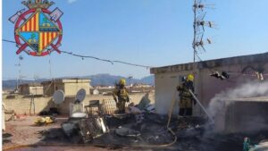 Bomberos y policía han colaborado este domingo para apagar un incendio declarado en la azotea de un edificio de Son Gotleu donde se acumulaba una gran cantidad de basura y desechos. 164