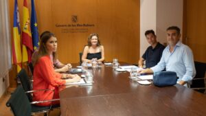 Onofre Fornés, presidente de la Asociación de Empresarios de Concesiones y Explotaciones de Servicios Temporales en el Dominio Público Marítimo Terrestre de Mallorca (ADOPUMA), y el portavoz de la entidad, Jaume Perelló, se han reunido este jueves con la consellera de Presidència, Funció Pública i Igualtat del Govern, Mercedes Garrido. 152