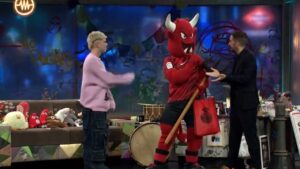 Dimonió, la mascota del RCD Mallorca, acudió este miércoles por la noche al Teatro Arlequín Gran Vía como acompañante del cantante mallorquín Marc Seguí en ‘La Resistencia’, el programa que presenta David Broncano en Movistar Plus+. 202