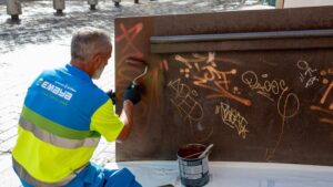 El Ayuntamiento de Palma ha puesto en marcha una actuación especial en el Mercat de l’Olivar para eliminar más de 300 pintadas vandálicas mediante la coordinación de diferentes áreas municipales para poder desarrollar también labores de vigilancia. 107