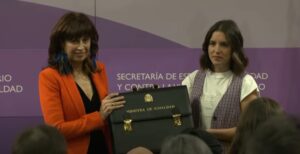 La minsitra saliente, Irene Montero, se despide de Igualdad, ministerio que asume ahora la socialista Ana Redondo, y carga en su ciscurso contra Pedro Sánchez: «Nos echa de este Gobierno por hacer lo que dijimos que haríamos». 406