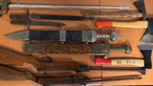 Un hombre ha sido detenido mientras se paseaba en plena calle con armas de fuego y machetes. 312