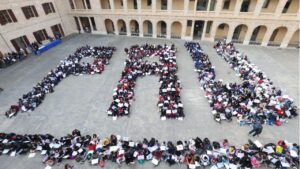 Un millar de alumnos de 12 centros educativos de Mallorca han celebrado este martes el Día Escolar de la no Violencia y la Paz en el centro cultural de la Misericòrdia de Palma, formando un mosaico humano con la palabra ‘paz’ y con distintas actividades. 110