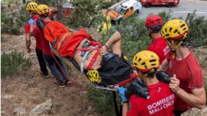 Un escalador, de unos 40 años, ha sufrido este sábado una fractura abierta de tobillo, después de padecer un accidente de escalada, quedándole el pie enganchado a la pared, en el muro de Caimari. 63