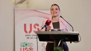 La presidenta del Govern, Marga Prohens, anunció un programa para mejorar las condiciones de los parados de larga duración, que implementará la Conselleria de Empresa, Empleo y Energía. Prohens destacó la colaboración con el sindicato USO y reafirmó su compromiso con la mejora laboral y la búsqueda de consensos en negociaciones. 210