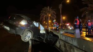 Una mujer, residente en la isla y de 26 años de edad, ha perdido durante la madrugada de este domingo el control de su vehículo y éste ha terminado colgando de una barandilla de la playa, en el Passeig Marítim de Palma. 343