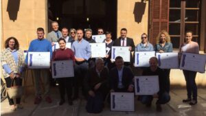 El alcalde de Santanyí, Llorenç Galmés, el regidor de Turisme, Rafael Alcalde, y el técnico auditor de la ATB, Xisco Bauçà, han entregado los diplomas de certificación SICTED este año a 31 empresas de Santanyí. 606
