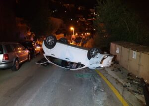 Un coche vuelca en un accidente tráfico en el Port de Sóller este sábado por la noche. 543