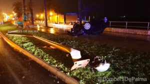 Una joven ha resultado herida este lunes de madrugada al volcar con su coche en el Paseo Marítimo de Palma. 739