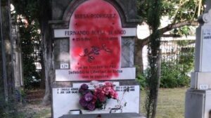 La tumba de Fernando Buesa, dirigente socialista asesinado por ETA en el año 2000, ha amanecido este jueves pintada con pintura roja. ; 162