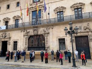 Las puertas del Consolat de Mar, sede del ejecutivo autonómico de Baleares, del Ayuntamiento de Palma y del Consell de Ibiza han acogido a mediodía de este miércoles un sentido minuto de silencio en recuerdo de la última víctima machista en España, en concreto, en Palma. 195