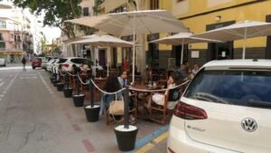 El Ayuntamiento de Palma permitirá que las terrazas de los bares y restaurantes ocupen plazas de aparcamiento hasta el próximo 31 de mayo, ha informado este miércoles el consistorio en un comunicado. 310
