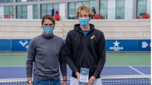 El tenista suizo Antoine Bellier ha recibido de manos del mallorquín Rafa Nadal el trofeo de campeón del torneo ITF by LG, que se ha disputado esta semana en la Academia que dirige el número 2 del mundo en Manacor. Bellier se deshizo del francés Evan Furness en dos sets, por 7-6 y 6-4. 128