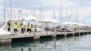 Alrededor de 150 personas trabajan desde la pasada semana en el montaje de la próxima edición del Palma International Boat Show, que se celebrará del 3 al 6 de junio en el Moll Vell de Palma. 196