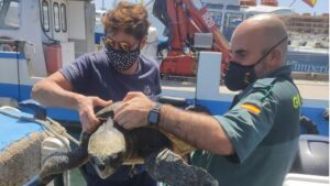El Servicio Marítimo de la Guardia Civil rescató la pasada semana un ejemplar de tortuga Boba (Caretta caretta) que tenía problemas de flotabilidad. 98