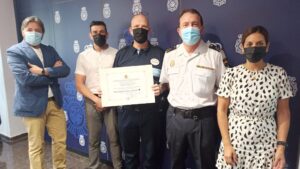 La Policía Nacional ha hecho entrega este jueves de una mención honorífica a un vigilante de seguridad que evitó una agresión de un hombre a su pareja en un mercado de Palma. 136