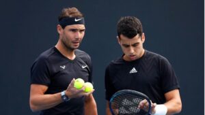 Los mallorquines Rafael Nadal y Jaume Munar se han impuesto a los argentinos Sebastián Báez y Tomás Martín Etchevarry por un ajustado 6-3, 3-6 y 10-4 en el estreno en dobles del Melbourne Summer Set. 80