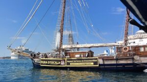 La plataforma contra los megacruceros ha reitrado la «poca ambición» del acuerdo del Govern con las navieras, antes de intentar este lunes aproximarse con el velero Rafael Verdera a ‘Wonder of the Seas»,el crucero más grande del mundo, para realizar una acción reivindicativa. 329