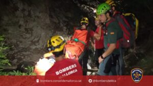 Un hombre ha sido rescatado en estado grave tras caer desde cuatro metros de altura durante la tarde de este miércoles en el torrente de Parangons, cerca del Coll Baix, en Alcúdia. 88