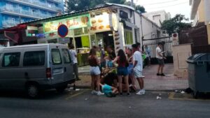 Así amanece s’Arenal cada mañana: lleno de servilletas y bandejas de cartón en las que se sirven kebabs y porciones de pizza. Los clientes, los estudiantes de viaje de fin de curso que desde hace semanas levantan las quejas de todo el vecindario. 1.474