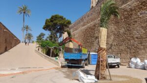 El Área de Infraestructuras y Accesibilidad del Ayuntamiento de Palma ha plantado desde junio y durante este mes de julio más de 200 palmeras en diferentes puntos de Palma y este miércoles ha sembrado cuatro en la zona de ses Voltes. 82