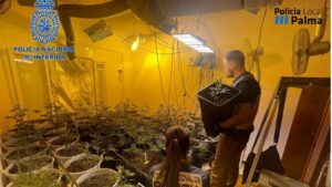 Un hombre de 63 años ha sido detenido por la Policía Nacional como responsable de una plantación de marihuana con 60 plantas y 20 esquejes en un piso de la zona de Establiments, en Palma 131