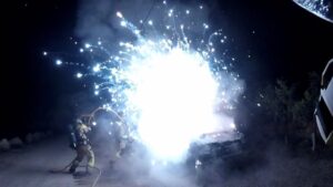 Los Bomberos de Ibiza han extinguido la pasada madrugada un incendio declarado en un vehículo que coincide con la descripción del todoterreno el utilizado en el asalto a un furgón para liberar a un preso. 319
