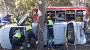 El accidente y vuelco de una furgoneta en la carretera de Formentor se ha saldado con ocho heridos, uno de ellos grave. Los Bomberos de Mallorca han tenido que rescatar a seis de los ocho ocupantes del vehículo, que se ha salido de la carretera y ha quedado volcado en la cuneta. 435