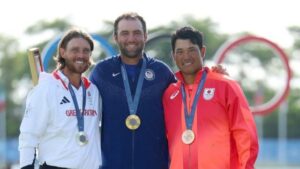 Un -9 (récord del campo) en la última ronda da el oro a Scottie Scheffler. Scheffler (USA) Oro, Fleetwood (GB) Plata y Matsuyama (JPN) Bronce este es el podium olímpico masculino de golf. 43