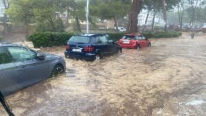 El temporal que ha azotado con fuerza a Mallorca durante la mañana de este lunes ha registrado incidencias en la isla debido a las fuertes lluvias acompañadas de tormenta, como por ejemplo el cierre de calles por inundaciones en Calvià. 956
