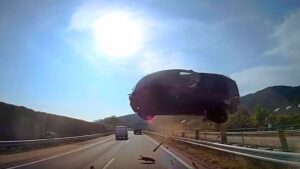 Pocas secuencias reales tan impresionantes como ésta. Un coche pierde el control y choca brutalmente contra el autobús que circulaba en el carril contrario. 1.171