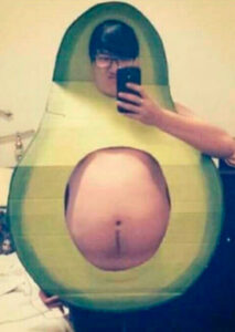 Si tienes una enorme tripa cervecera tienes dos opciones: traumatizarte y matarte en el gimnasio o alegar que te la estás trabajando para el próximo disfraz de carnaval. El aguacate es bueno para la salud, ya dicen. 209