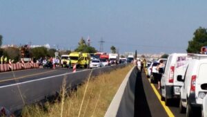 Colapso en la autopista de Inca. Un cable de media tensión ha caído en la vía obligando al cierre de la misma. 976