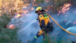 Efectivos del Instituto Balear de la Naturaleza (Ibanat) y bomberos del parque de Alcúdia trabajan desde poco antes de las 8.00 horas en la extinción de un incendio forestal en el Puig de Maria, en el municipio de Pollença. Dos horas más tarde, se da por controlado. 293
