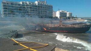 Los Bomberos de Ibiza tratan de extinguir un incendio que ha calcinado dos embarcaciones en Caló des Moro, Sant Antoni. Según ha confirmado el Ayuntamiento, técnicos de Medio Ambiente ya se han desplazado a la zona para comprobar si se han producido vertidos y es necesario cerrar la playa. 670