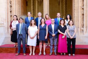 Los once consellers del nuevo Govern balear, siete hombres y cinco mujeres, han tomado posesión de sus cargos este miércoles por la mañana en un acto celebrado en el patio de la sede del ejecutivo autonómico en el Consolat de Mar, con la presidenta Francina Armengol. 978