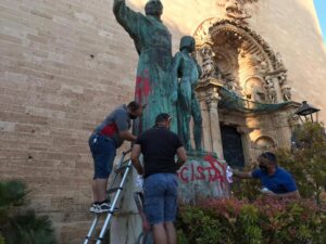 La estatua de Fra Juníper Serra en la plaza Sant Francesc de Palma vuelve a lucir como siempre, después del ataque vandálico con pintura que sufrió este lunes. La Hermandad de la Santa Caridad y Beato Junípero Serra se ha encargado de la limpieza de la pintada de «racista» con la que amaneció la estatua […]