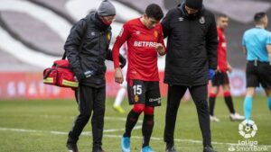 El lateral del Real Mallorca Fran Gámez deberá permanecer alejado de los entrenamientos al menos durante un periodo de tres semanas a consecuencia de la lesión que sufrió el pasado sábado, durante el partido disputado por su equipo ante el Rayo Vallecano, y que le ha afectado seriamente el gemelo. 218