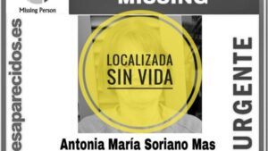 Antonia María Soriano Mas, la mujer de Campos que se hallaba desaparecida desde el pasado viernes ha sido localizada sin vida, según ha informado la plataforma SOS Desaparecidos. 909