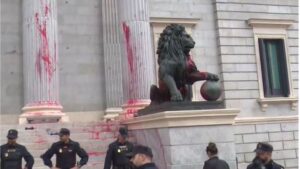 La Policía Nacional ha detenido a varios activistas por arrojar pintura roja a los leones del Congreso de los Diputados. Según la información que ha trascendido, estaban realizando una protesta ecologista frente a la Cámara Baja y han acabado arrojando pintura roja a los leones en señal de protesta. 44
