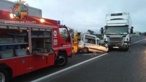 Un hombre ha resultado herido de gravedad tras un choque frontal entre un camión y una camioneta que se ha producido esta madrugada, sobre las 6:30 horas, en Palma. 999