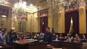La juez de Instrucción de Sevilla considera que la simulación de besar a Teresa Rodriguez por parte del empresario Manuel Muñoz Medina y rechaza que se tratara de una «broma de mal gusto», procesándolo así por un delito contra la integridad moral y/o de atentado contra la autoridad. 217
