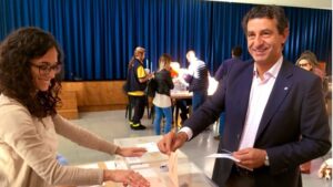 El lider de los populares en Baleares, Biel Company, ha votado esta mañana en el Colegio Sagrado Corazón. 555