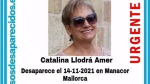 La asociación Sos Desaparecidos ha informado de la desaparición de Catalina Llodrá Amer, desaparecida en Manacor en noviembre del año pasado. 118