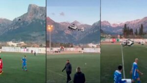 La imagene es espectacular. El helicóptero de la Guardia Civil, conocido como el ‘Cuco’ aterriza en el campo de fútbol de Sóller -en el que se disputaba un partido- para evacuar a una familia atrapada por la borrasca Juliette. 751